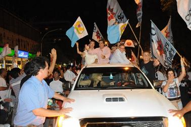 Locales | El Frente para la Victoria festeja en la Plaza 25 de Mayo, donde Jorge Capitanich agradeció “tanto amor” y homenajeó a Néstor Kirchner con el amplio triunfo.