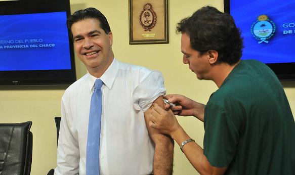 Luego de ser inmunizado contra la gripe como cada año, el gobernador Jorge Capitanich brindó detalles sobre los avances en la Campaña de Vacunación Antigripal 2013 y convocó a la población con factores de riesgo a recibir la dosis para prevenir enfermedades respiratorias severas. Actualmente, la aplicación de vacunas antigripales en la Provincia alcanzó al 40 por ciento de la población objetivo.