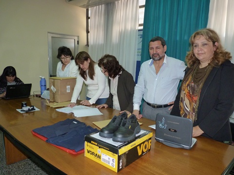 Locales | La ministra de Desarrollo Social, Beatriz Bogado, entregó 20 conjuntos de indumentaria a cooperativistas del plan nacional Argentina Trabaja, que trabajan en la ampliación o construcción de viviendas.