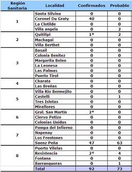 Locales | El Ministerio de Salud Pública informa que se detectaron 32 nuevos casos de dengue en las localidades de Sáenz Peña y Coronel Du Graty, a través de los operativos permanentes de búsqueda activa de pacientes febriles y/o personas que presentaron un cuadro febril reciente. Con estas notificaciones, suman 92 los casos de dengue en la Provincia.