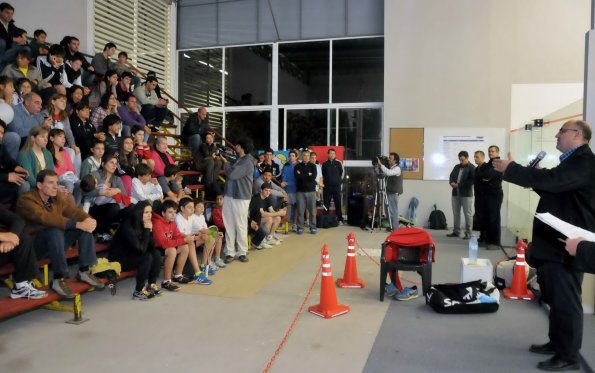 Locales | El vocal oficial de Lotería Chaqueña, Néstor Avalle, acompañado por su par del Instituto del Deporte, Iván De los Santos, premiaron anoche a los campeones del Tour de las Américas - Open 2013 de Squash, que se realizó en las canchas del Club Regatas Resistencia que fueron especialmente inauguradas para este torneo de nivel internacional.