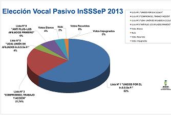 Locales | De acuerdo al escrutinio Provisorio, la Lista Nº 1 se impuso en todas las categorías, transformándose en un hecho histórico, ya que nunca antes una agrupación había logrado triunfar en la elección para Vocales Activos, Pasivos y Síndicos. Graciela Aranda (Vocal Activo); Eduardo Carballo (Vocal Pasivo) y Raúl Monzón (Síndico), asumirán sus funciones como miembros del Directorio del Insssep el próximo 2 de julio.