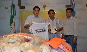 Locales | El presidente de Lotería Chaqueña, Darío Kohli, hizo entrega hoy de indumentaria y pelotas de fútbol a miembros de la Asociación Obrera Textil.
