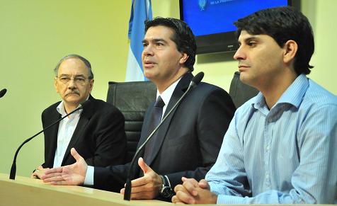 Locales | El Jefe de Gabinete del Ministerio de Educación de la Nación, Pablo Urquiza, hoy hizo una entrega simbólica al ministro de Educación de la Provincia del Chaco, Sergio Soto de las resoluciones del Plan de Mejora Institucional (PMI) para escuelas secundarias y del Programa Integral para la Igualdad Educativa (PIIE) para primarias de la provincia.