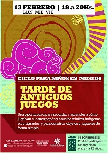 Locales | A partir del miércoles 13, el Museo del Hombre Chaqueño Profesor Ertivio Acosta (Juan B. Justo 280) abrirá la inscripción para participar en su conocido ciclo Tardes de antiguos juegos, actividad destinada a niños y niñas de 4 a 12 años.