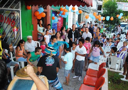 Locales | El Ministerio de Desarrollo Social acompañó el festejo del 40º aniversario de la heladería Dino, y del cumpleaños de su dueño Dino Paganucci, junto a niños y niñas del Pequeño Hogar Nº 1 y del Instituto Los Girasoles. En la oportunidad se realizaron actividades de recreación y diversión con una murga local.