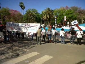 Locales | Luego de una reunión de Asamblea que realizaron ayer los docentes de la ENS Nº 76 “Colegio Nacional Gral. José María Paz” por el descuento que sufrieron en sus haberes, decidieron hoy cortar la avenida 9 de Julio. La concentración que sumó docentes de otras instituciones educativas marcharon hacia Casa de Gobierno donde protestan en reclamo al reintegro total de lo adeudado. A pesar de la promesa de Educación de hacer efectivo el reintegro a partir del lunes 12, los docentes descreen esta decisión y seguirán en estado de Asamblea y medida de fuerza hasta que la promesa se efectivice.