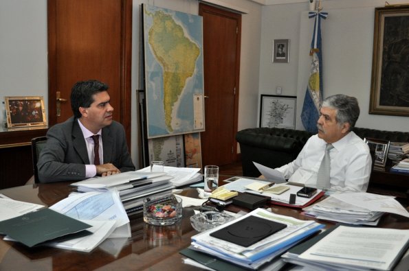 Locales | Durante su visita a Capital Federal, el gobernador se reunión con el ministro de Planificación Federal, con quien coordinó el desarrollo de obras para los próximos tres años. Además, repasaron importantes obras de infraestructura como el gasoducto y fibra óptica. En la ocasión, programaron una visita del funcionario nacional a la provincia.