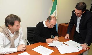 Locales | En el marco de la Ley 6.973, en la sede de la Bolsa de Comercio, el vicepresidente de la Fiduciaria del Norte SA, Alejandro Cucher, encabezó este mediodía la firma de un convenio que prevé asistencia e insumos a productores de la zona de Pampa del Infierno, en vistas de la campaña de girasol y de una ayuda para los afectados por la sequía. En total abarca un monto de $ 2.415.000,00, que abarcará a 16 a productores agrupados en la firma Alfredo Brugnoli Cereales SRL.