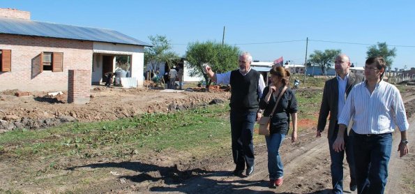 Locales | El presidente del Instituto Provincial de Desarrollo Urbano y Vivienda (IPDUV), José Valentín Benítez, junto a los vocales del organismo, Fredi Carauni y Gustavo Cicik, y a la coordinadora nacional del Programa de Integración Sociocomunitaria, Roxana Abu, recorrieron la zona sur de Resistencia, donde cooperativas de trabajo llevan adelante la construcción de más de 250 unidades habitacionales. Las casa se edifican en los terrenos del excampo de Tiro.