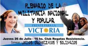 Locales | Luego del acto que Cristina Fernández de Kirchner encabezó el 27 de abril en Vélez Sarsfield, el kirchnerismo chaqueño debía reunirse para cerrar filas tras la presidenta de la Nación. Por eso el Frente para la Victoria se reunirá el jueves a las 16 en el club de Regatas Resistencia para manifestarle su respaldo “en el plenario de la militancia” kirchnerista del Chaco.