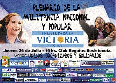 Locales | Sectores políticos, sociales, sindicales y culturales del kirchnerismo precisaron los motivos del plenario que se iniciará a las 16, en el aniversario de la muerte de Evita y en apoyo al proyecto nacional y popular que encabeza Cristina
