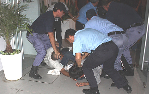 Locales | Violentos incidentes se produjeron en el Municipio cuando un grupo de manifestantes ingresó por la fuerza al edificio causando destrozos y amenazando al personal. Rociaron con gas de garrafa a una funcionaria y amenazaron con prenderla fuego.