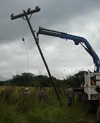 Locales | Varias cuadrillas trabajan en la zona de Colonia Tacuarí y El Palmar, en el levantamiento de postes. En el Interior, con el apoyo de la Subsecretaría de Energía, se realiza el arreglo de dos torres metálicas de 132 Kv.