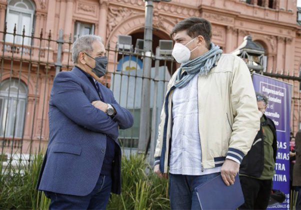 Nacionales | Fue en un acto frente a la Casa Rosada por el Día del Empresario Nacional. El sindicalismo bancario junto a pymes pidió menos horas a igual sueldo. La celebración fue convocada por Empresarios Nacionales para el Desarrollo Argentino frente a la Casa Rosada. Allí estuvieron el presidente, Leo Bilanski; Daniela Beselko y el bancario Sergio Palazzo.
