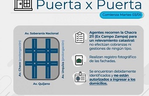 Locales | Se trata de un relevamiento catastral de los datos de las y los usuarios, características y uso del inmueble; estado, distancia y tipo de conexión de agua y cloaca. El personal está debidamente identificado y no está autorizado a ingresar a los domicilios.