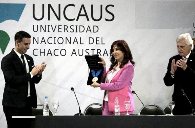 Locales | La vicepresidenta recibió el Doctorado Honoris Causa de la casa de altos estudios y brindó una ponencia sobre "Estado, Poder y Sociedad: la insatisfacción democrática". El Consejo Superior tomó la decisión de distinguirla por "su trascendente aporte a la consolidación del sistema democrático argentino durante su mandato", según expresó el rector de la institución académica, Germán Oestmann.