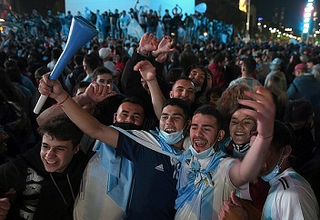 Nacionales | Minutos después de terminado el partido en Río de Janeiro, una multitud se concentró en el mástil de Av. 9 de Julio en Resistencia, en el Obelisco de la Ciudad de Buenos Aires y en cada localidad de nuestro país, donde comenzaron a sonar las bocinas de los autos y se inició la procesión del festejo albiceleste.
