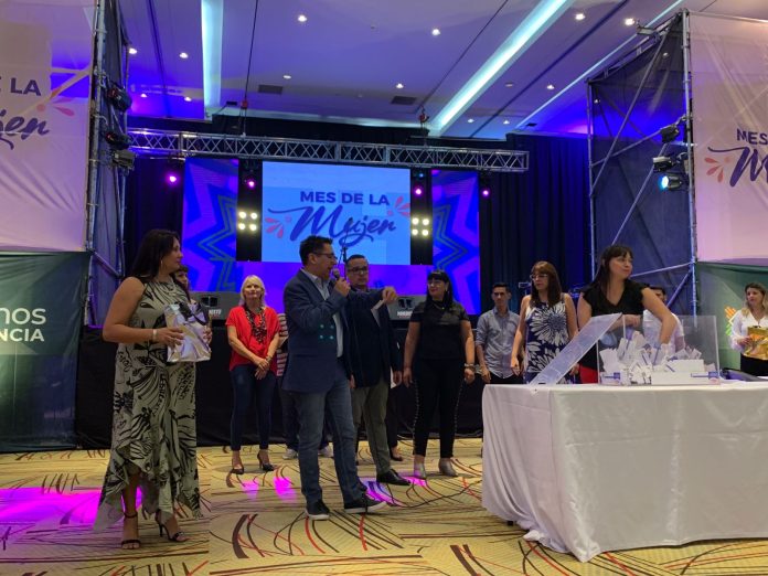Locales | En el Centro de Convenciones Gala, la gestión municipal conmemoró el Día Internacional de la Mujer realizando una cena-show para las más de dos mil empleadas de la Municipalidad, con la presencia de Gustavo. Hubo sorteos con varios premios y espectáculos musicales.