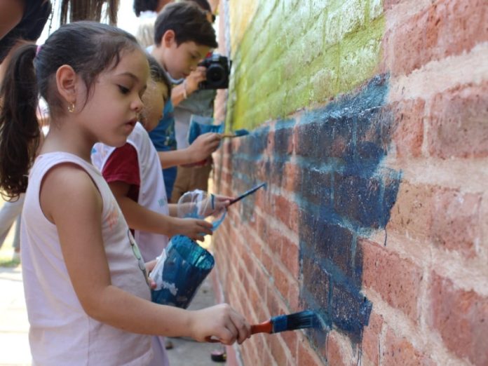 Locales | Niños, niñas y adolescentes de los niveles primario y secundario de cuatro escuelas de la regional educativa 10 B pintaron un mural colectivo en la escuela 75 "Julio Cortázar" de Resistencia, en el marco de las actividades del programa Volvé a la Escuela de Verano, impulsado por el ministerio de Educación de la Provincia.