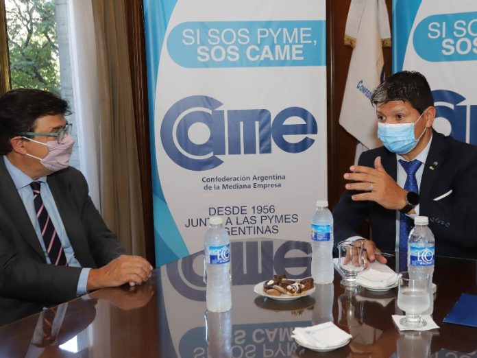 Locales | El ministro de Trabajo, Empleo y Seguridad Social, Claudio Moroni, y el presidente de CAME, Alfredo González, mantuvieron un encuentro en el que acordaron avanzar en una agenda de trabajo conjunta sobre temas relevantes en el contexto actual, como la asistencia a pymes y comercios, la formación para el Primer Empleo y la conversión de planes sociales en trabajo registrado en las economías regionales.