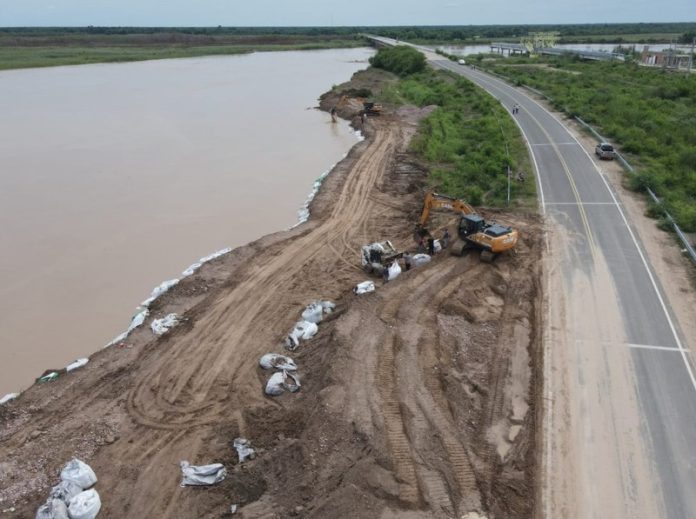 Locales | Hasta el momento se colocaron mil bolsas (de piedras y tierra) de casi una tonelada cada una para impedir que el agua erosione la costa cercana a la ruta 95. Además, se colocarán otros 2.000 bolsones más en las próximas horas.