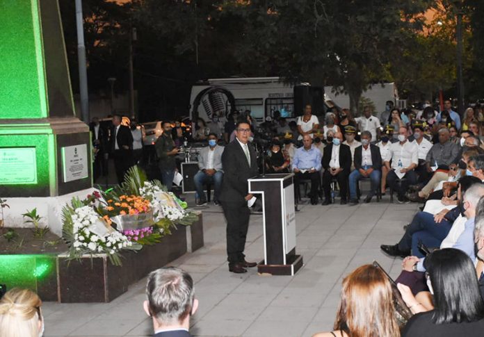 Locales | El intendente capitalino encabezó el acto principal por el aniversario 144 de Resistencia, que fue llevado a cabo en el Monolito ubicado en la avenida Ávalos al 1000, y que contó con la actuación de la Banda Municipal “Luis Omobono Gusberti”, también se colocaron ofrendas florales al pie de la escultura para recordar a los primeros inmigrantes friulanos que llegaron y compartieron tierras con los pueblos originarios.