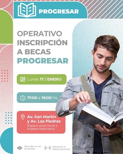 Locales | El lunes 17 se hará un nuevo operativo de inscripción a las becas PROGRESAR. Será en la intersección de avenidas San Martín y Las Piedras (espacio verde frente a la Iglesia Stella Maris), de 17 a 19.