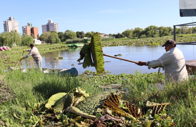 Locales | En la laguna Argüello, Resistencia inició un nuevo trabajo de acondicionamiento del espejo de agua, debido a la acumulación de vegetación acuática. Similar tarea se efectúa en las lagunas Francia y Seitor.