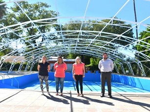 Locales | La intendenta Patricia Rodas recorrió las instalaciones de la pileta municipal acompañada del Secretario de Cultura, Deporte y Turismo, Daniel Fernández, la Jefa de Sección de Pileta, Marina Zacarías, y la del Departamento de Deporte y Recreación, Luciana Sánchez. En ese marco anunció la apertura de temporada para Enero.