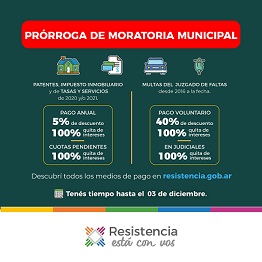 Locales | Los vecinos y vecinas podrán acogerse hasta este viernes 3 de diciembre al Plan de Facilidades de pago que impulsa Gustavo para los tributos municipales adeudados de los ejercicios 2020 y 2021. Este régimen con importantes descuentos, incluye multas contravencionales desde el año 2016 en adelante.