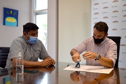 Locales | El presidente de Lotería Chaqueña, Gabriel Lemos y el intendente de Fuerte Esperanza, Walter Correa, rubricaron un convenio para construir un parque acuático en Fuerte Esperanza, un proyecto que beneficiará a buena parte de la zona de El Impenetrable.