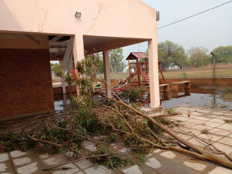 Locales | Al tratarse de una construcción reciente, la obra se encuentra aún en garantía. La empresa constructora ya envió a verificar los daños y adelantó que "se procederá a reparar parte del cielorraso, que fue embolsado por los fuertes vientos y el agua caída".