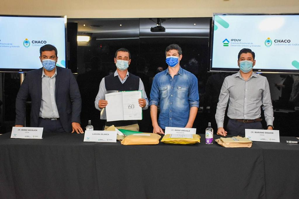 Locales | A través del Programa Federal Casa Propia-Construir futuro, se construirán 11 unidades habitacionales en Laguna Blanca y 64 en Barranqueras. "Redoblamos constantemente los esfuerzos con el objetivo de dar respuestas a las necesidades de la gente", puntualizó el titular del organismo, Diego Arévalo.