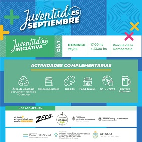 El evento, organizado por el Gobierno de la Provincia, en el mes de las juventudes, inicia a las 17 horas del domingo 26, en el Parque de la Democracia. La convocatoria, libre y gratuita, está destinada a las y los jóvenes chaqueños para que disfruten de una amplia grilla de actividades.