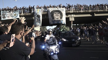 Nacionales | La localidad bonaerense ofrece muestras de incondicional amor al astro, en una zona cuya habitual rutina se vio transformada a causa del operativo policial que rodea el lugar elegido como última morada del ídolo.