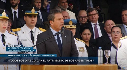 Nacionales | "Desde mi parte tienen todo el respaldo para salir a la calle para defender la Constitución, y pero sobre todo la vida y los bienes de los argentinos", aseguró el candidato de UxP al hablar en el acto central por la semana de la Policía Federal.