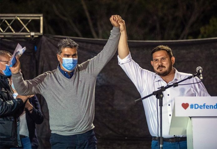 Locales | El gobernador Jorge Capitanich encabezó este sábado 28 de agosto un nuevo acto de campaña del Frente de Todos Chaco en Sáenz Peña. Renovó su compromiso para la construcción y mejora de redes de agua potable y cloacas, más pavimento urbano, viviendas, el nuevo autódromo y más infraestructura escolar. Pidió a la militancia fortalecer el compromiso para llevar el mensaje del Frente de Todos.