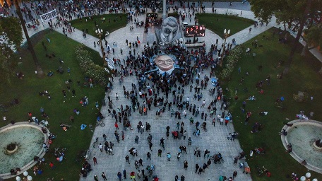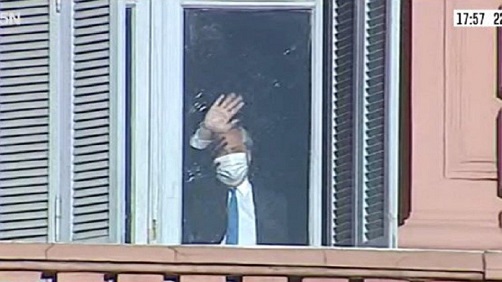 Nacionales | El Presidente se acercó a la ventana de la Casa Rosada y saludó a quienes se acercaron a la Plaza de Mayo para rendirle homenaje al fallecido ex mandatario.