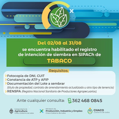 Locales | La convocatoria a sumarse al Sistema Informático de Productores Agrícolas Chaqueños está dirigida a los cultivos de maíz, sorgo, soja y tabaco. Para el algodón, el llamado ya se encuentra vigente.