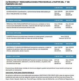 La Unión del Personal Auxiliar de Casas Particulares ( Upacp) publicó en su sitio web el listado de categorías y remuneraciones provisorias que rigen en febrero y marzo.