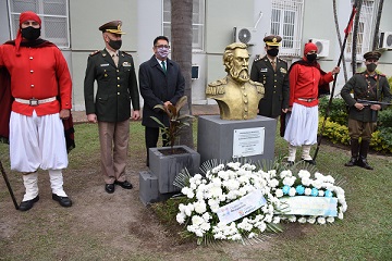 A pesar del frío y respetando las medidas de prevención sanitaria en pandemia, Resistencia recordó los 200 años del fallecimiento del General Martín Miguel de Güemes con actividades encabezadas por Gustavo y que concluyeron con el descubrimiento de un busto de dicho prócer en la sede municipal de avenida Italia 150.