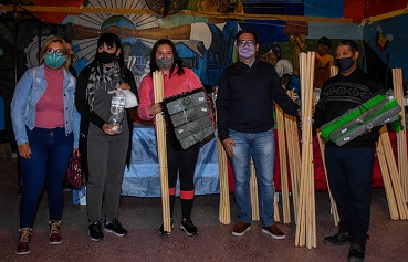 En el centro comunitario del barrio Güiraldes, Gustavo realizó la entrega de herramientas de trabajo a los 15 centros comunitarios de la Ciudad. En esta oportunidad se entregaron elementos de barrido y en ocasiones anteriores los trabajadores recibieron desmalezadoras, motosierras de mano y de altura, equipamiento rodante e instrumentos de seguridad.