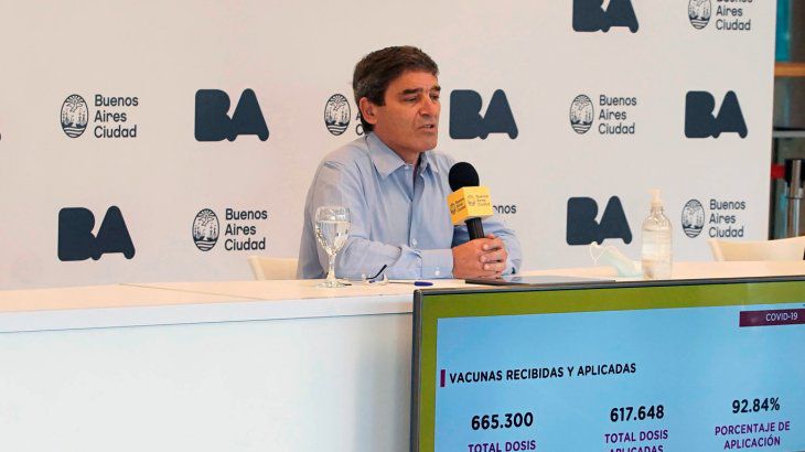 El funcionario porteño afirmó que "el concepto de inmunidad rebaño es difícil aplicar para esta enfermedad" y aclaró que la inmunidad rebaño con la variante Delta requiere dos dosis de vacunación muy alta, cerca de un 80%, en su habitual conferencia de prensa semanal para brindar datos de la situación sanitaria por coronavirus en la ciudad.