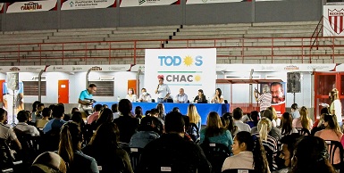 En la cancha del Club Regional, se desarrolló una reunión encabezada por Gustavo, de la que formaron parte los candidatos y candidatas a diputados y diputadas provinciales por la lista 501 del Frente de Todos, militantes, dirigentes y referentes del circuito 13B.