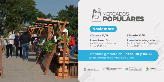 El Ministerio de Planificación, Economía e Infraestructura recuerda que se garantiza el transporte gratuito para las y los vecinos que deseen concurrir a los Mercados Populares que se desarrollarán este viernes y sábado en plazas del área Metropolitana del Gran Resistencia.