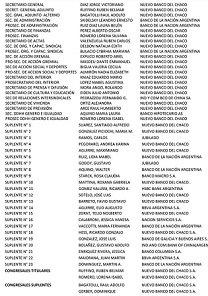Jorge Díaz, secretario General de la Asociación Bancaria. La nómina total de integrantes de la Lista N°1 Celeste y Blanca, electa el pasado 24 de noviembre del 2022, que asume en este nuevo mandato es la siguiente: