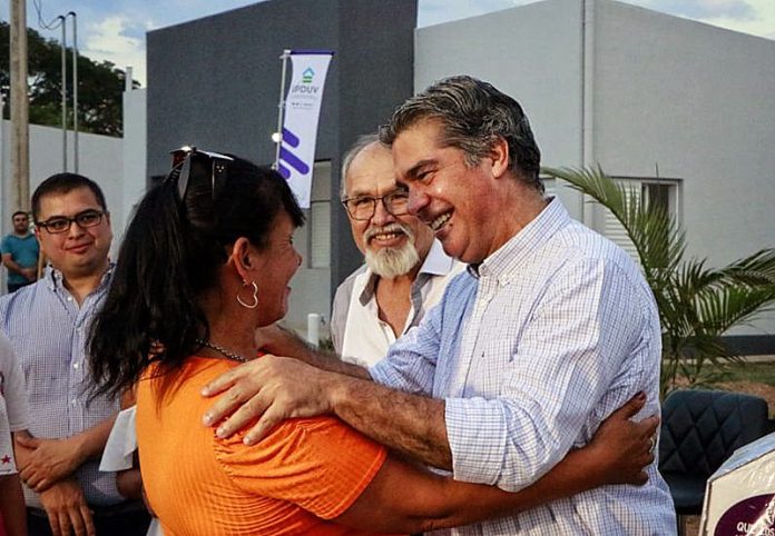 “No hay alegría más grande para un gobernante que poder estrechar un abrazo cálido, profundo y cordial con una familia que recibe las llaves de su nueva vivienda que le transforma su vida para siempre”, expresó Capitanich durante la entrega.
