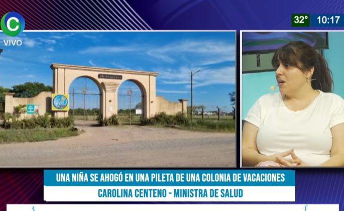 En los estudios de CIUDAD TV, la ministra de Salud, Carolina Centeno, se refirió al trágico episodio ocurrido en una colonia de vacaciones en Resistencia, donde se ahogó una niña de 3 años este martes en horas de la siesta. “Lamentablemente nos notificaron desde el Centro de Salud de Villa Río Negro que atiende 24 horas, donde ingresaron a la niña sin signos vitales, de 3 años, procedente de una colonia de vacaciones, con signos de ahogamiento”, sostuvo y comentó que procedieron los profesionales “con reanimación cardiopulmonar durante 45 minutos, sin obtener respuestas”.