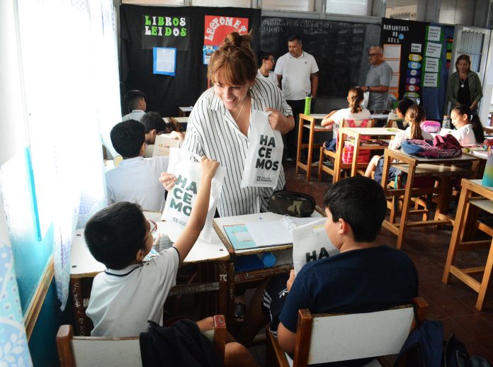 Las entregas de los kits se realizan tanto para los alumnos primarios de los turnos mañana y tarde como para sus docentes. Y en lo que va del año ya se recorrieron 29 escuelas y se llevan entregados mas de 9500 kits.